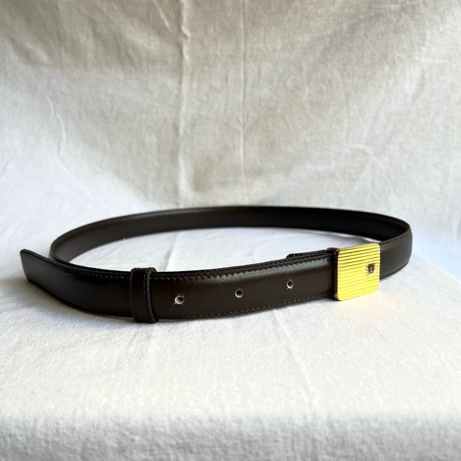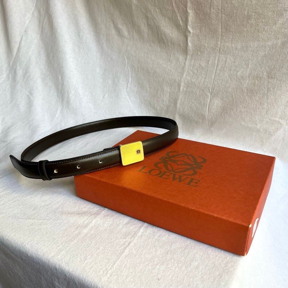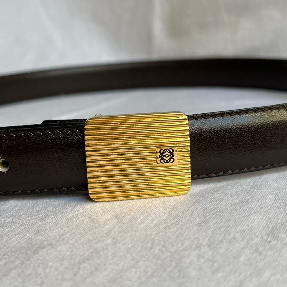Dark Brownの細いベルトにゴールドのスクエアバックルが映えるLOEWEのベルト!