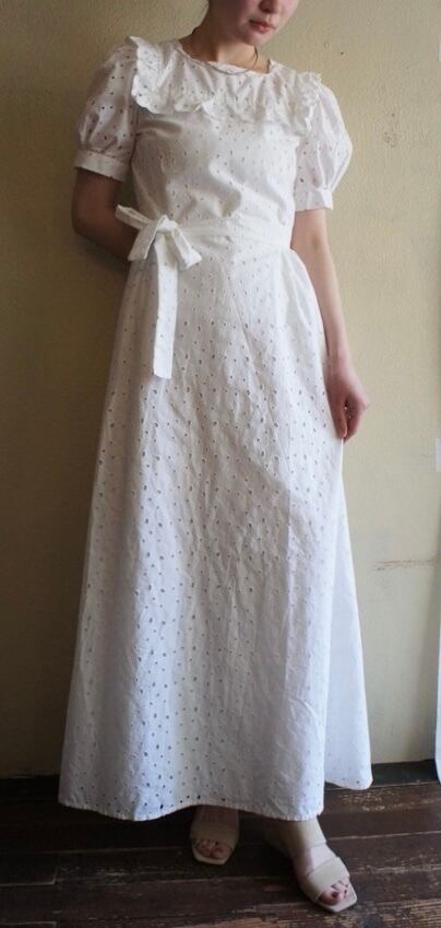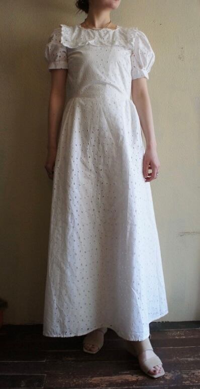 ピュアなホワイトカラーが清楚な雰囲気のFrance 1970~80's Vintage ロングドレス!