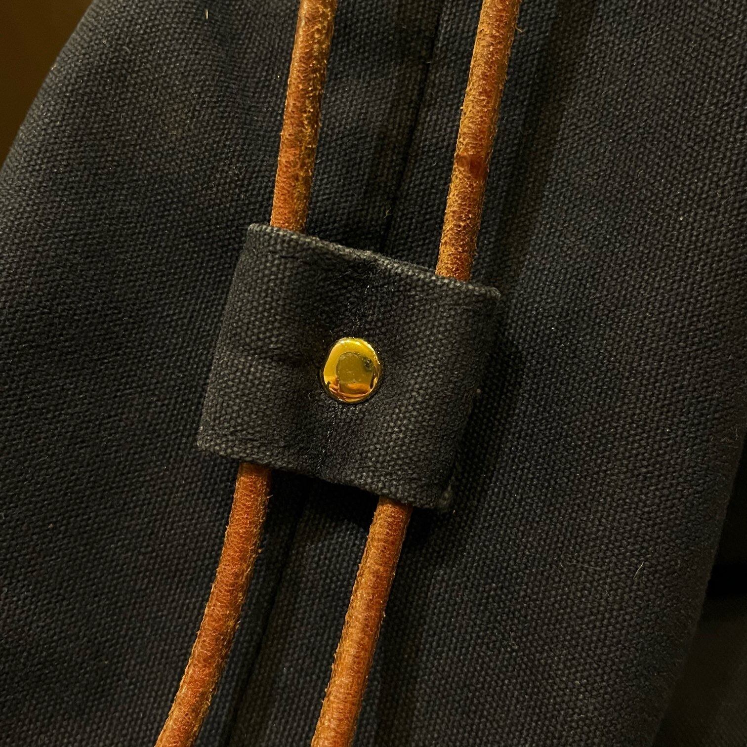 素材:キャンバス/コットン生地、レザーパイピング&ストラップ