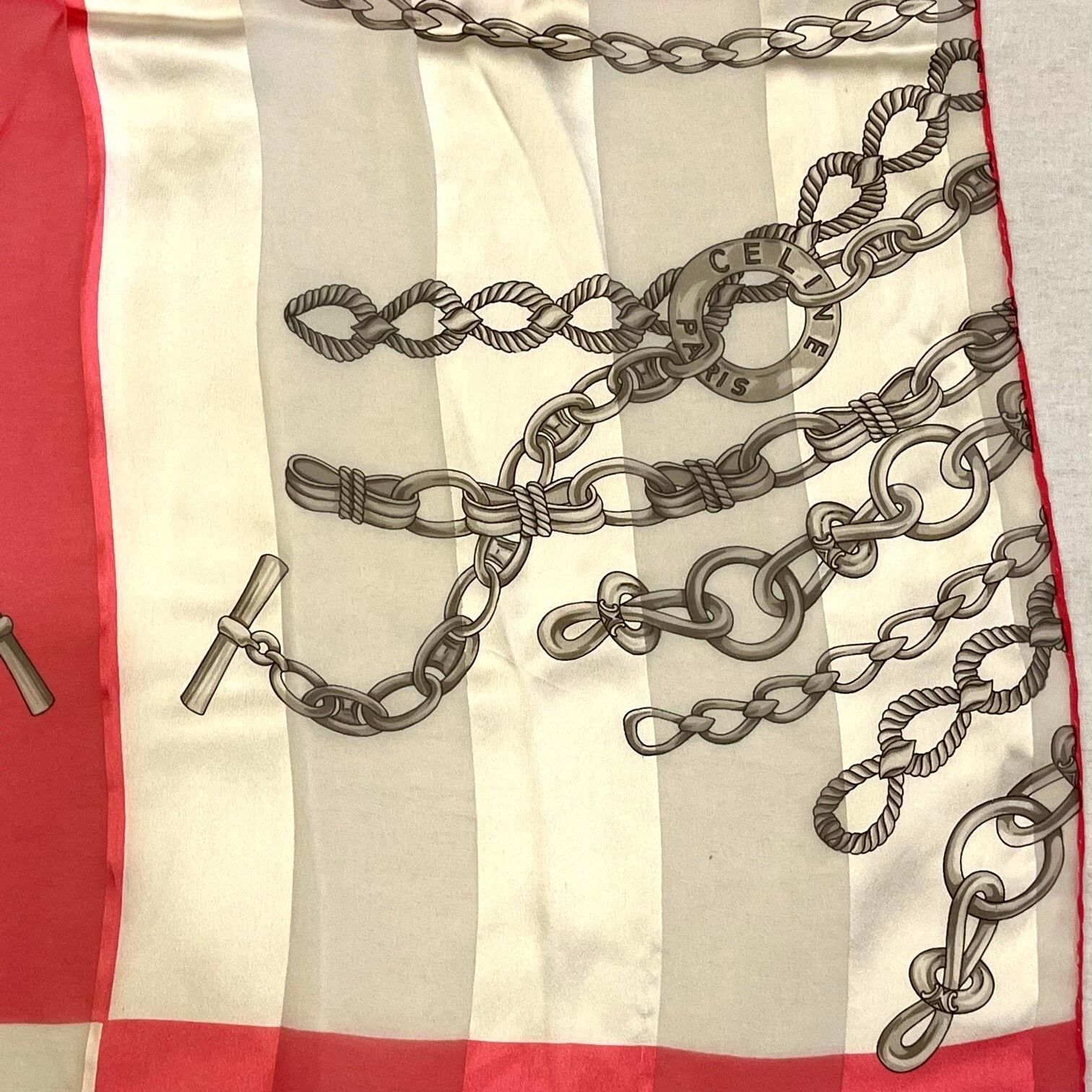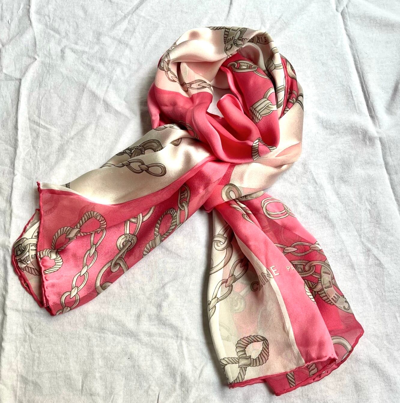 CELINE "Silver Chain Designf" Pink Sheer Long Scarf