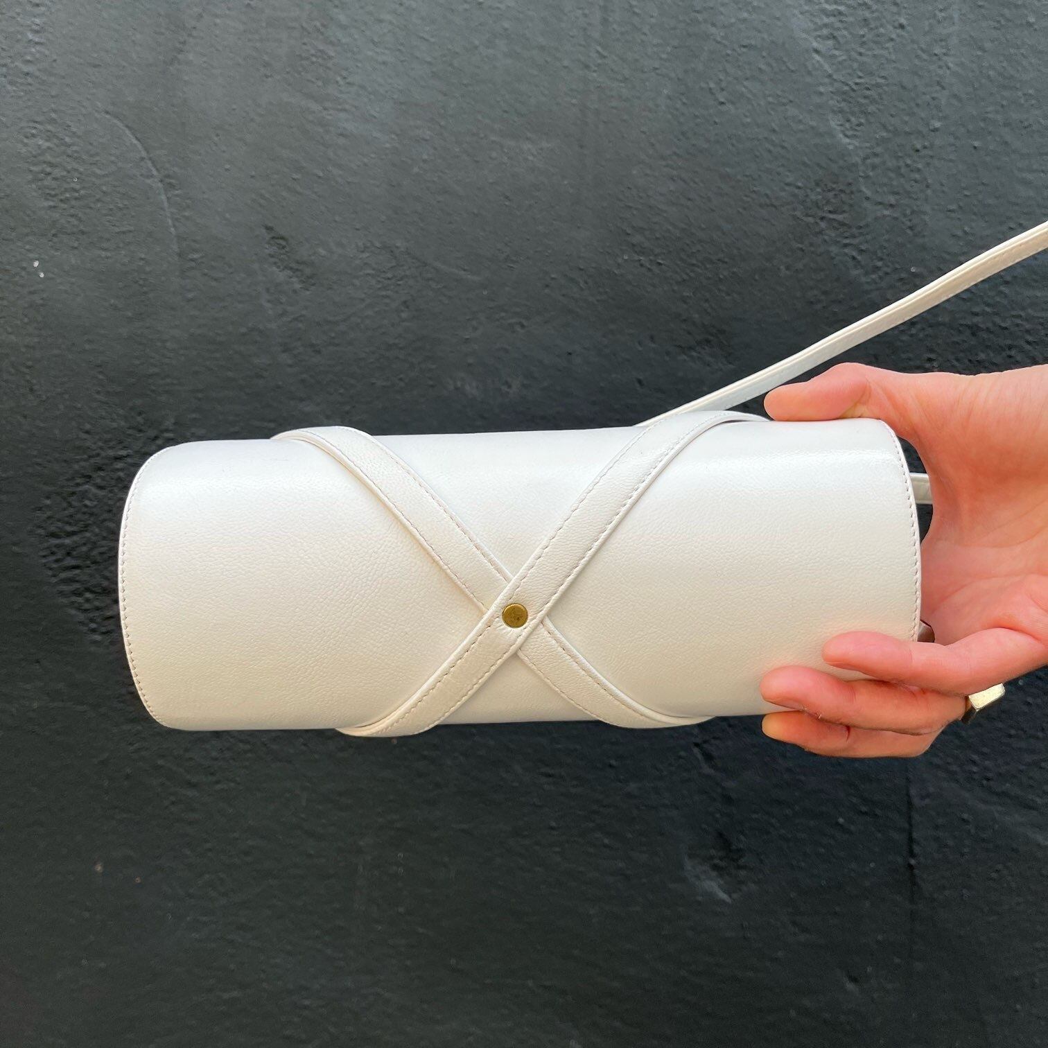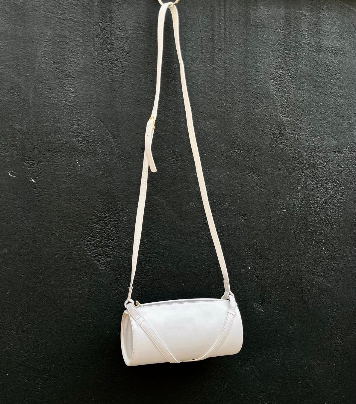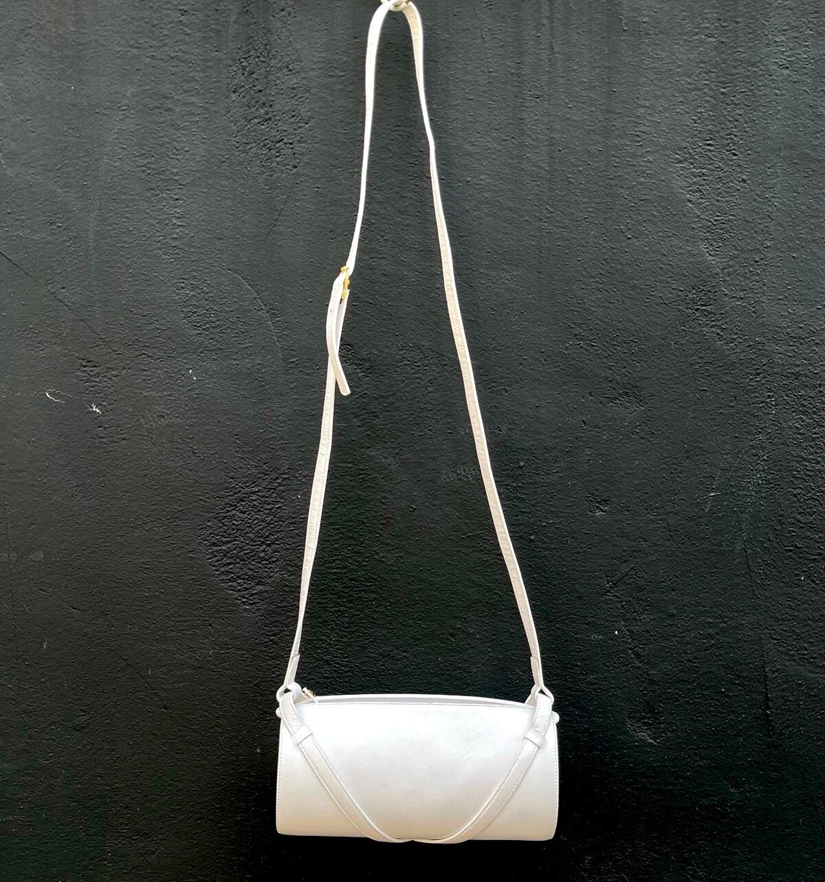 LA BAGAGERRIE "White Leather" Cylindrical Shape Shoulder Bag