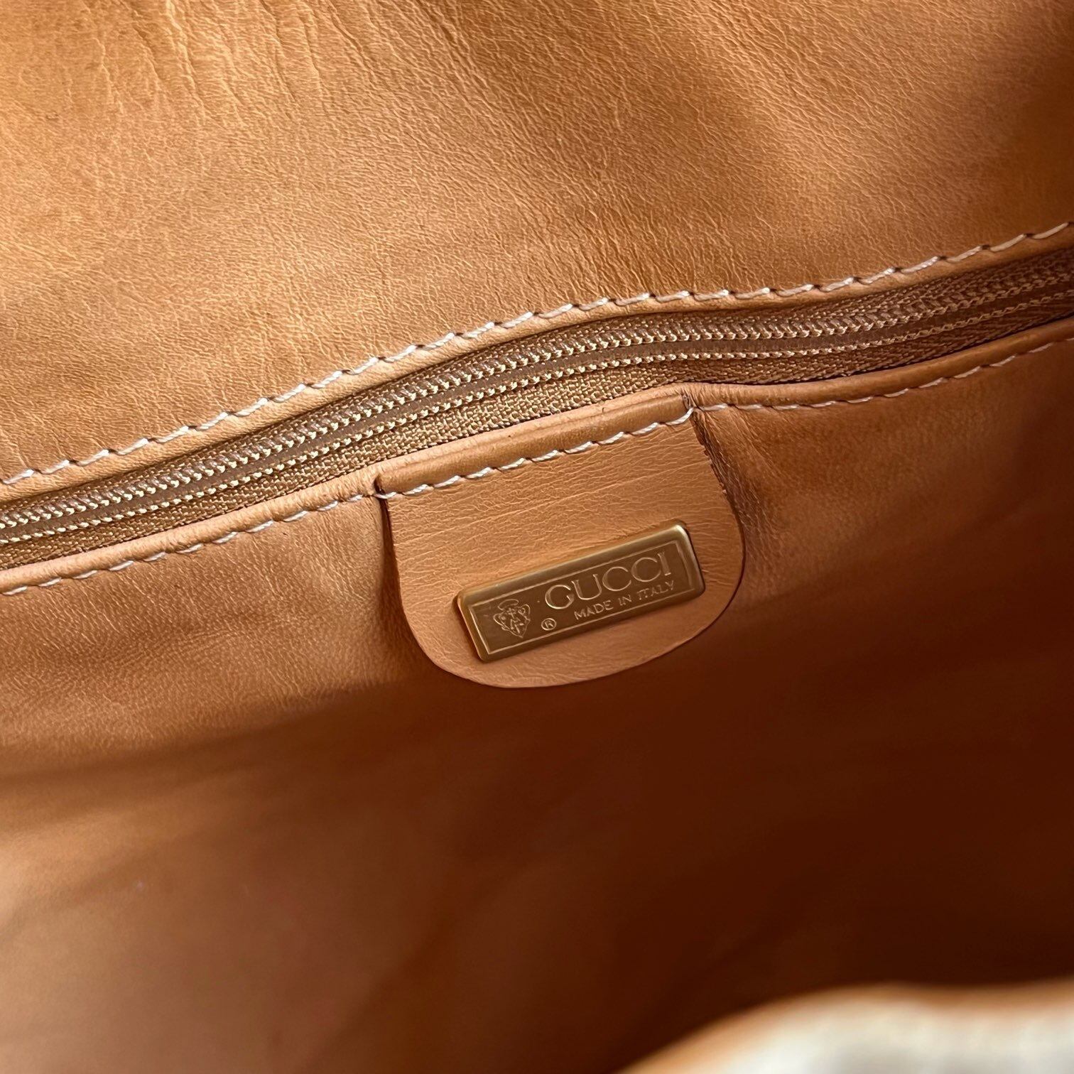 オフホワイトのキャンバス地にLight Brownレザーのコンビが洗練された印象のGUCCIハンドBag!