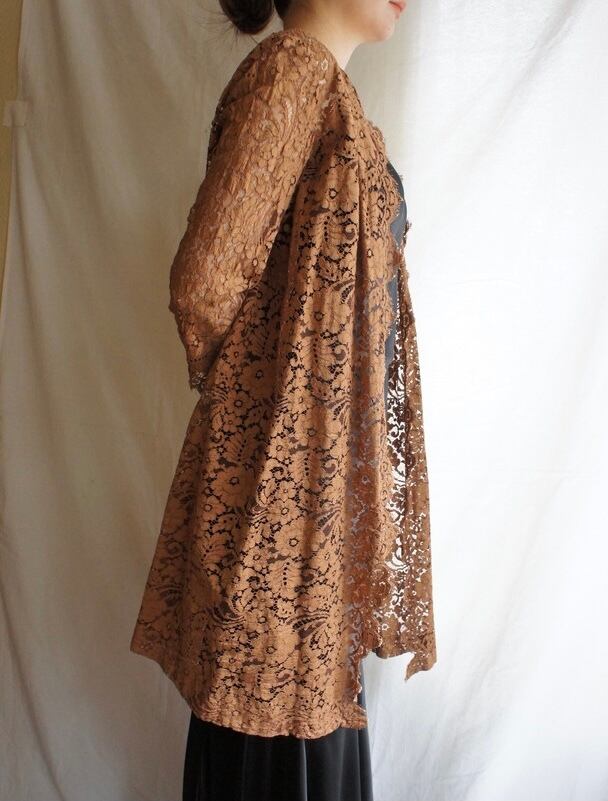 花のレースが細かく芸術的なFrance 1960's Vintageレースガウン!ハンドメイド。