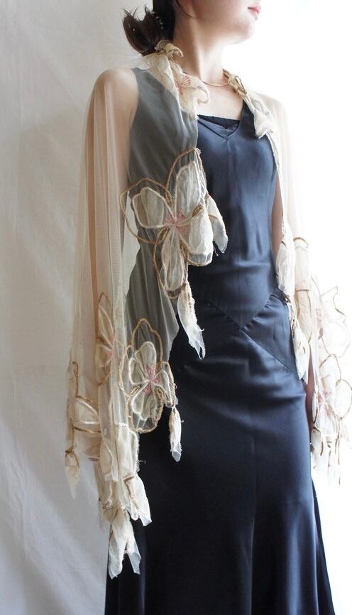 パーティーのドレスの羽織として、または普段に取り入れても。