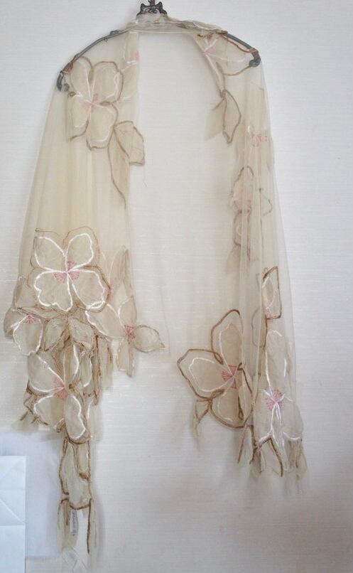 チュールレースに、花の刺繍が美しいItaly Vintageレースストール!