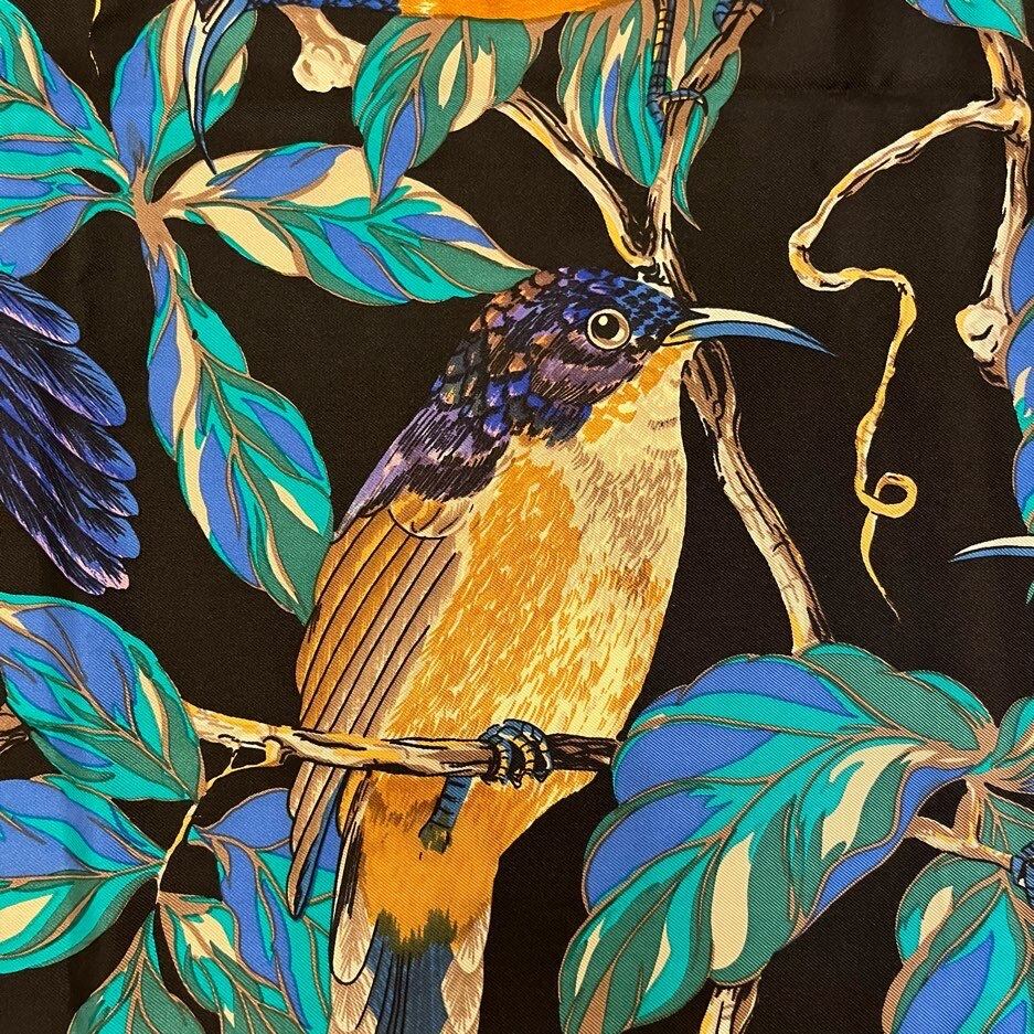 ブラックベースに鮮やかな青い鳥が目を惹くDiorスカーフ!