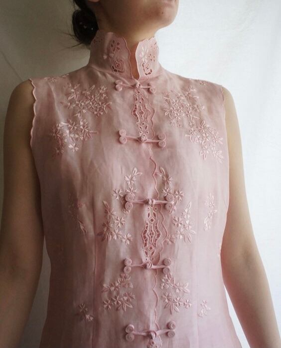 チャイナドレスの、カットワークレース、全身に散りばめられた、花模様刺繍は、細かい部分が芸術的です。☆