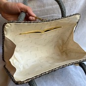 LANCEL "Khaki Grey" Rattan Hand Bag