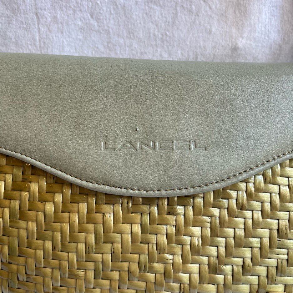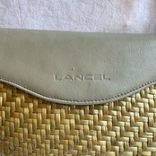 LANCEL "Green" Rattan × Leather Shoulder Bag