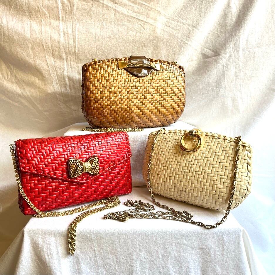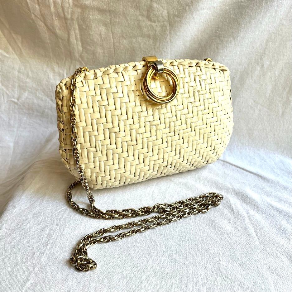 オフホワイトにゴールドのメタルパーツが映えるRODOのVintageラタンショルダー/クラッチ2-Wayバッグ!