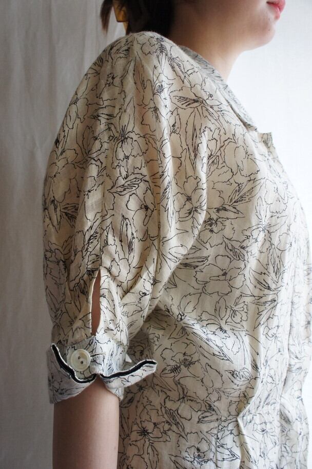 ラグランのふわっとした肩脇ラインに、タックの折り返し凝ったラインの袖口、しまったウエストウエスト、とっても綺麗でクラシックなラインです。