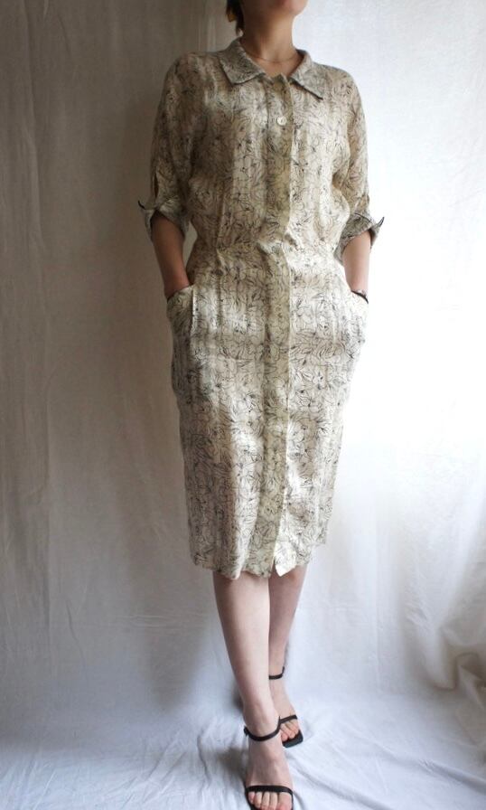 アイボリー時に線画の花柄が繊細な印象のGUCCI 1980's Vintageワンピース、レア!