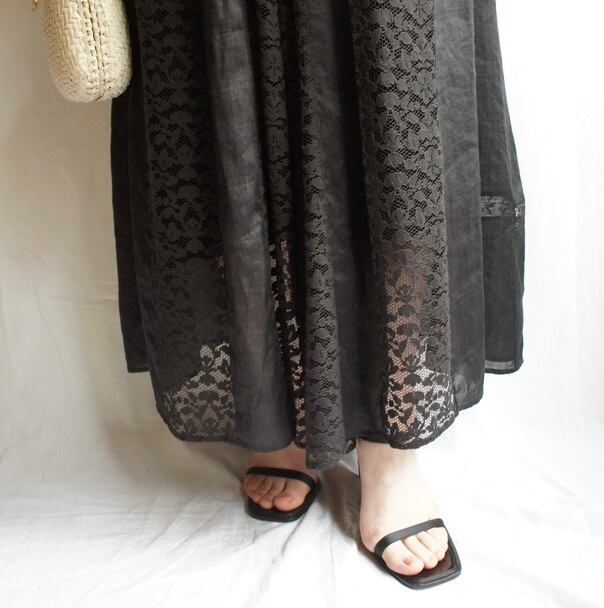 ハリのあるリネンのような質感の生地と刺繍レースのコンビが美しい一枚です☆