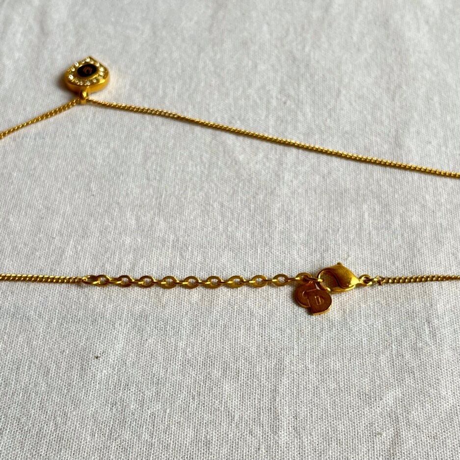 DIOR "Black DIOR Logo × Rhinestone" Gold Color Necklace