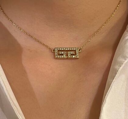 GIVENCHY "Rhinestone GG Logo" Gold Color Necklace
