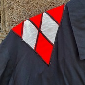 パッチワークになっており、刺繍もクールな凝った一枚☆
