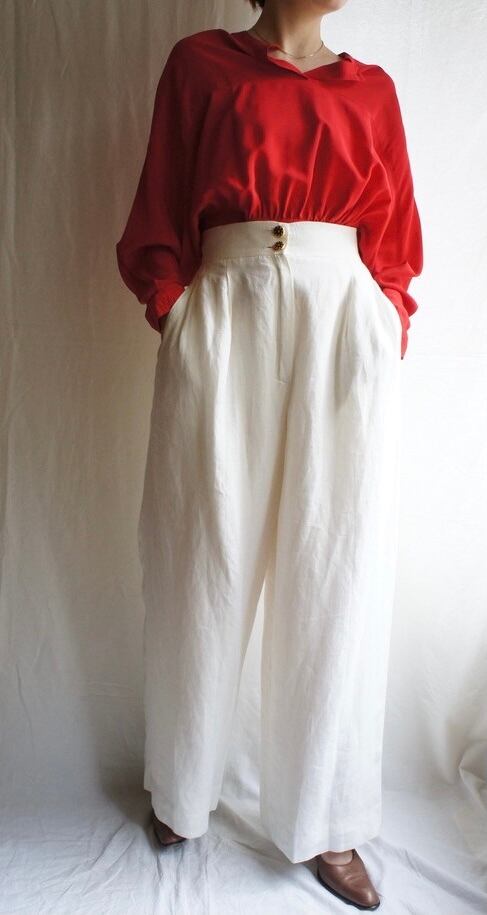 ホワイトのリネン地がさわやかなLACROIXのハイウエストパンツ!