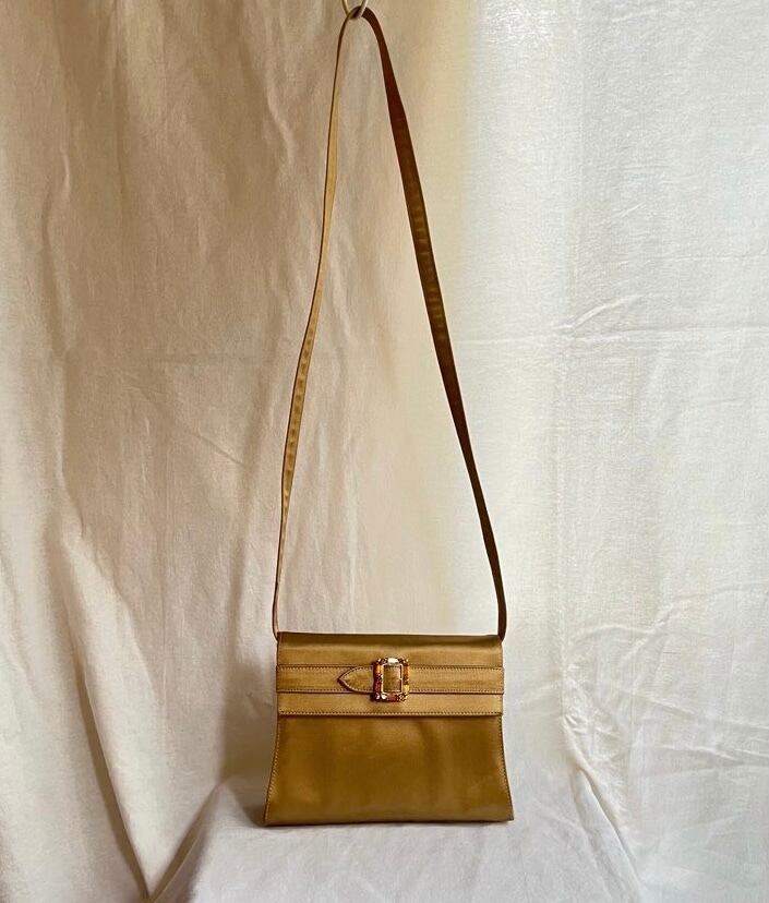 ベージュゴールドのサテン地が美しいFERRAGAMOのショルダーBag!
