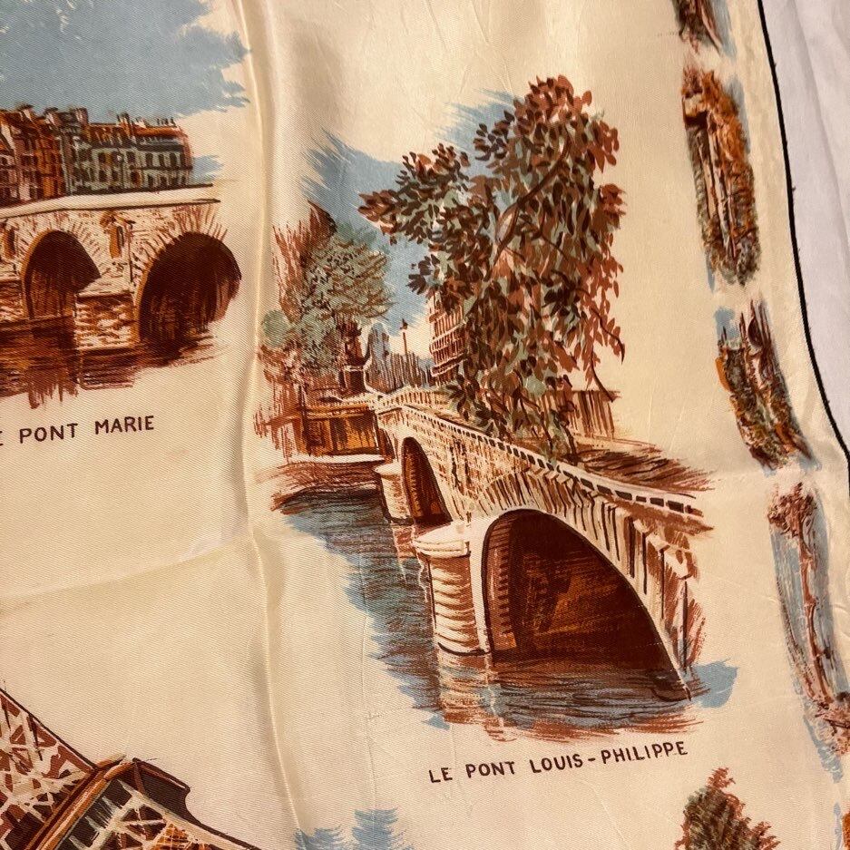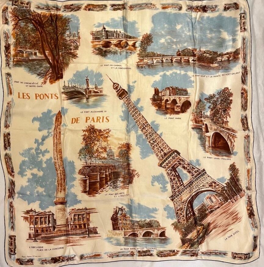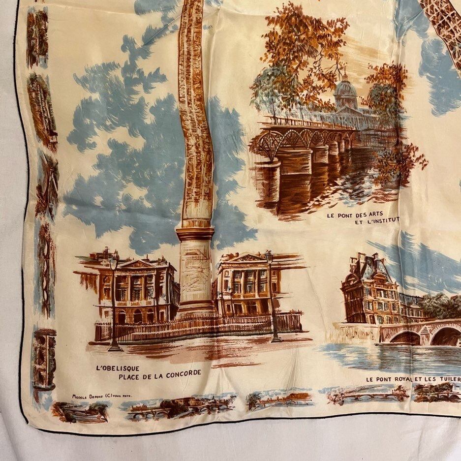 エッフェル塔や橋(ポンヌフ?)のデザインがパリらしいフランスお土産スカーフ!