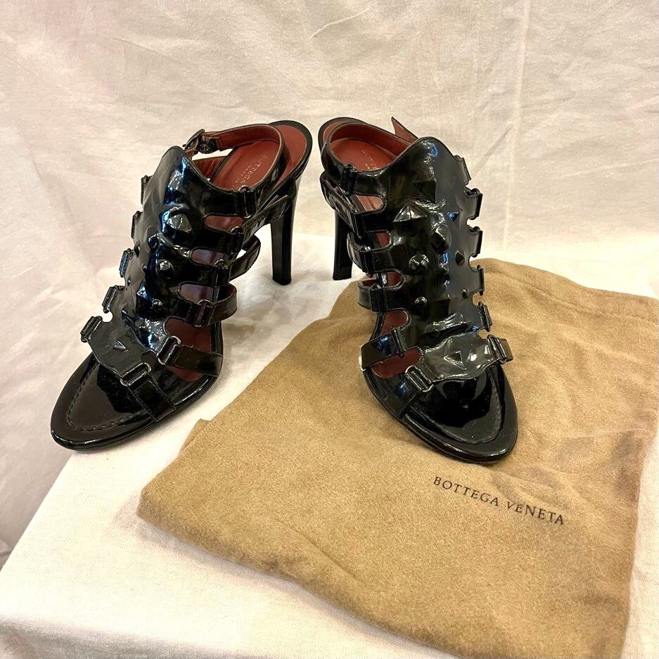 ブラックのエナメル地がモードに輝くBOTTEGAのハイリールサンダル!
