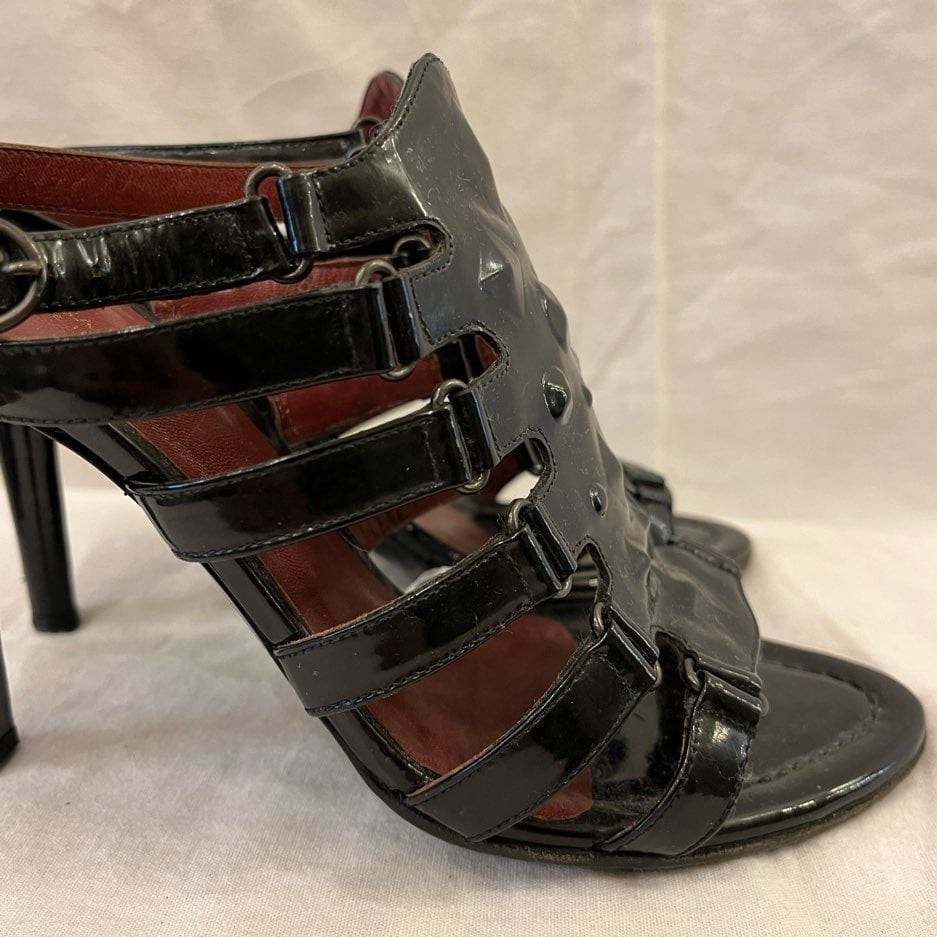 BOTTEGA "Black Enamel" High-Heel Sandal