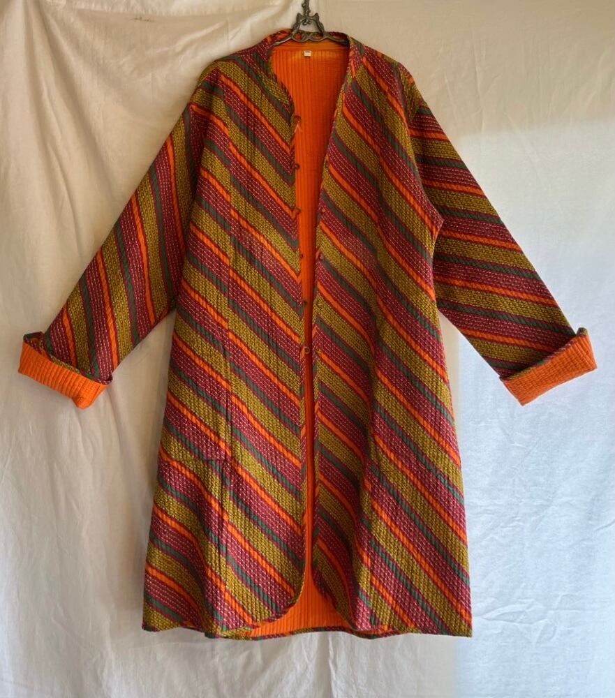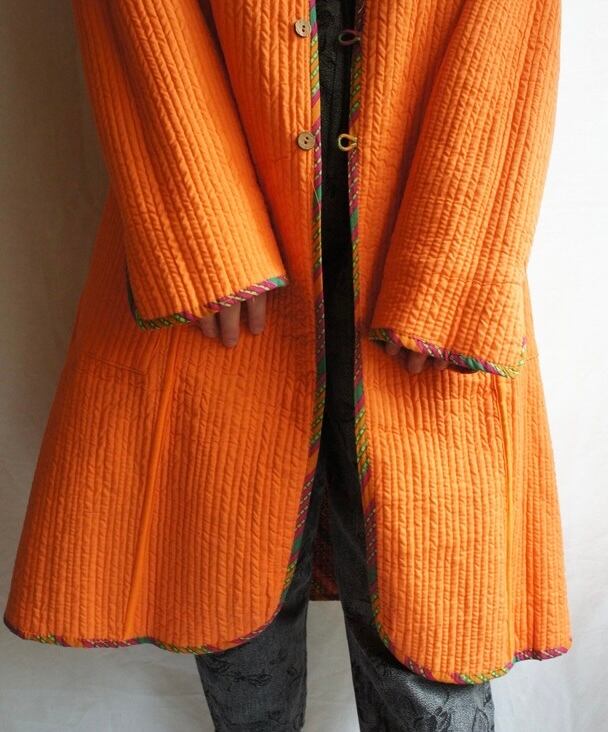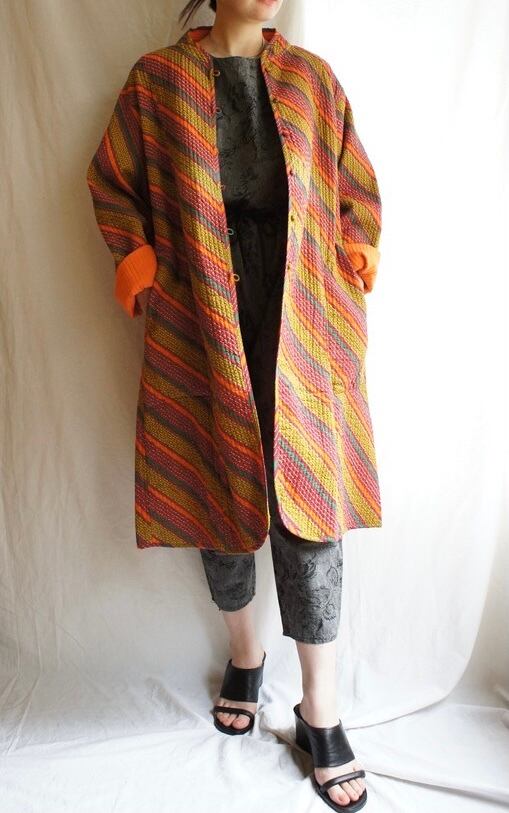 ビビットなオレンジとマルチカラーの両面楽しめるFrench Vintageリバーシブルコート!