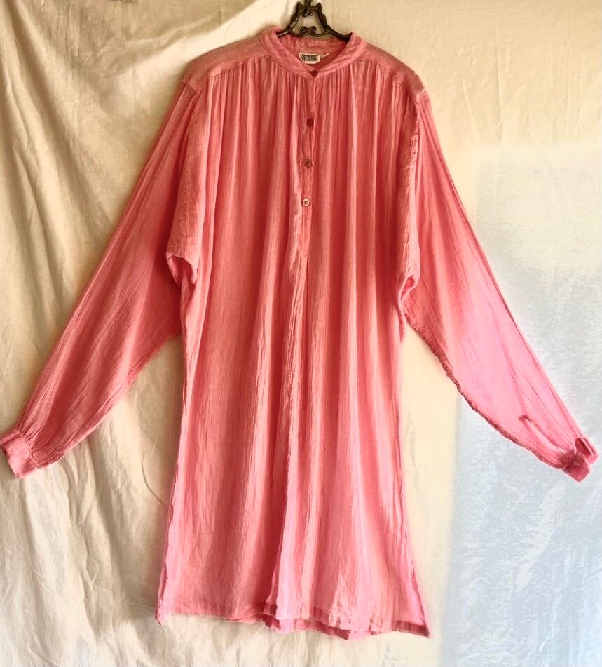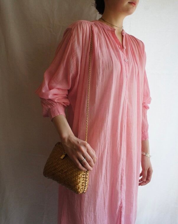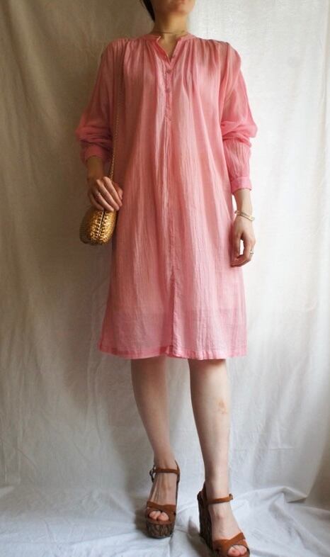 明るいピンクカラーがハツラツとした印象のFrench 1970's Vintage hippie dress