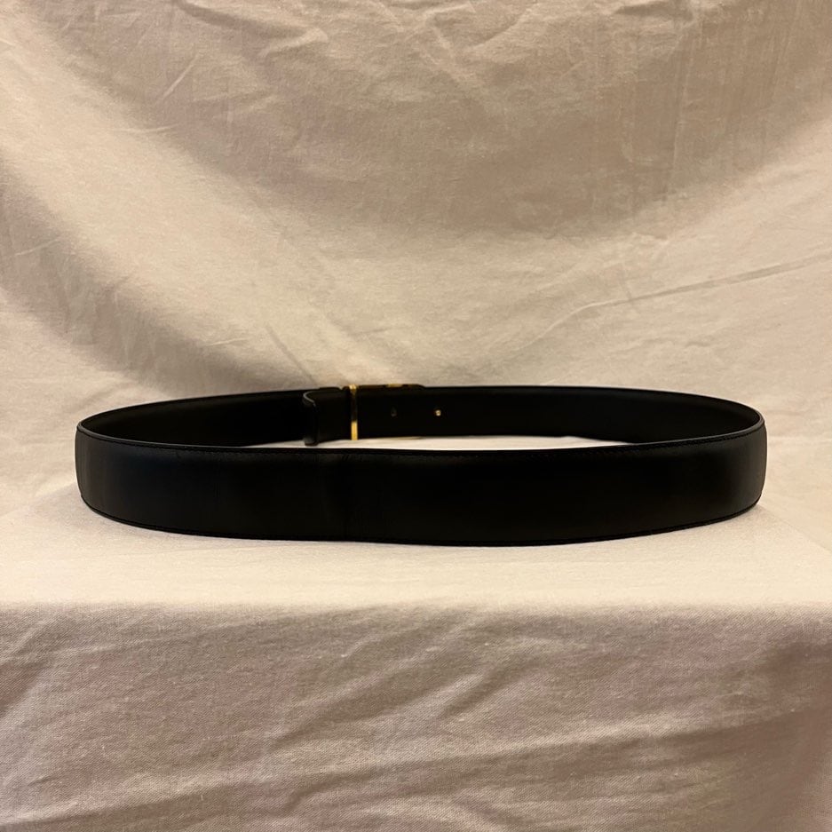 CELINE ≪Men's≫ 1980's "Silver×Gold Horse Carriage" Black Leather Belt with Box -Dead Stock!-