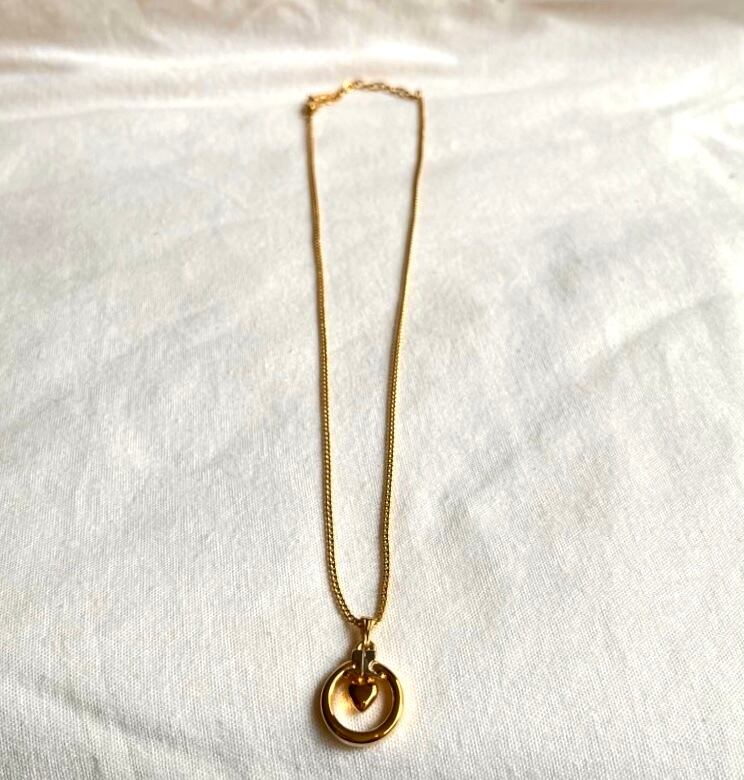 シルバーカラーのクレージュロゴとゴールドのハートモチーフがcuteなコンビのネックレス!