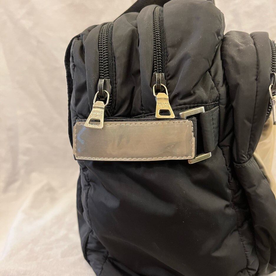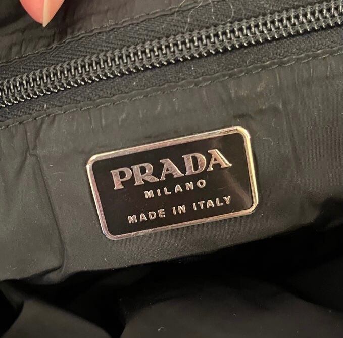 ブラックのナイロン地に赤タグが映えるPRADAのハンドBag!