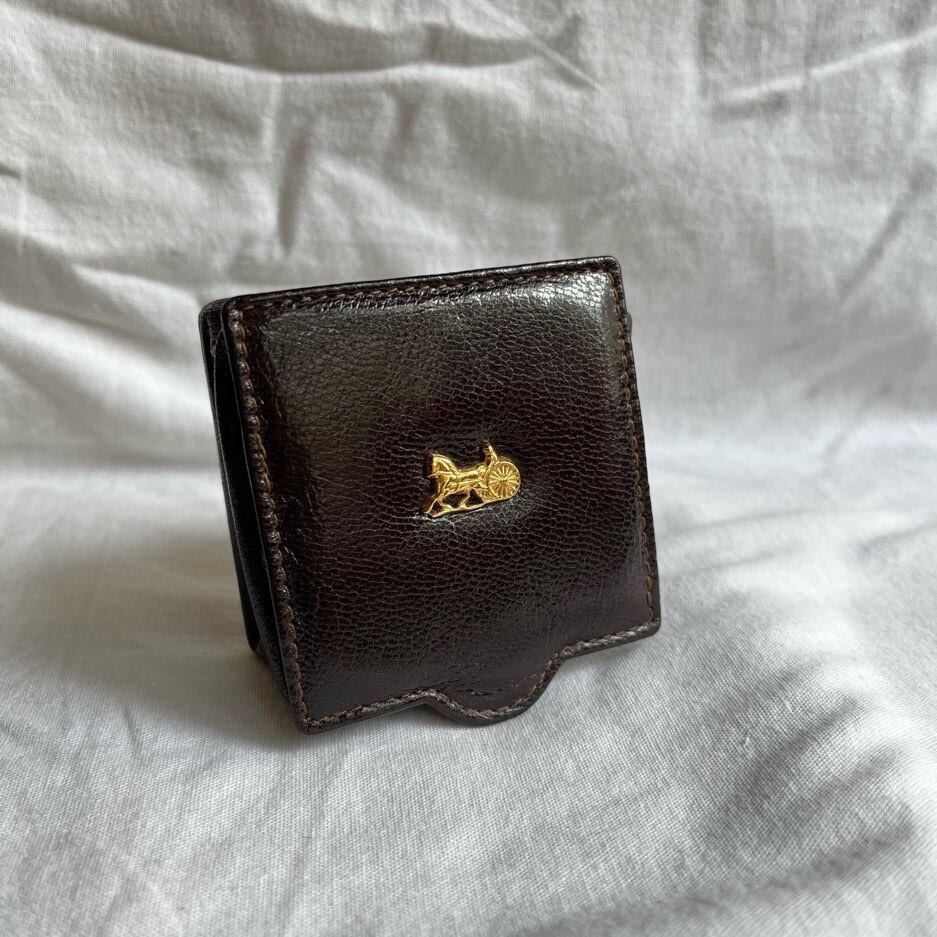 つやのあるDark Brownのレザー地にGoldの馬車モチーフが映えるCELINE 1980'sコインケース!Dead Stock☆☆