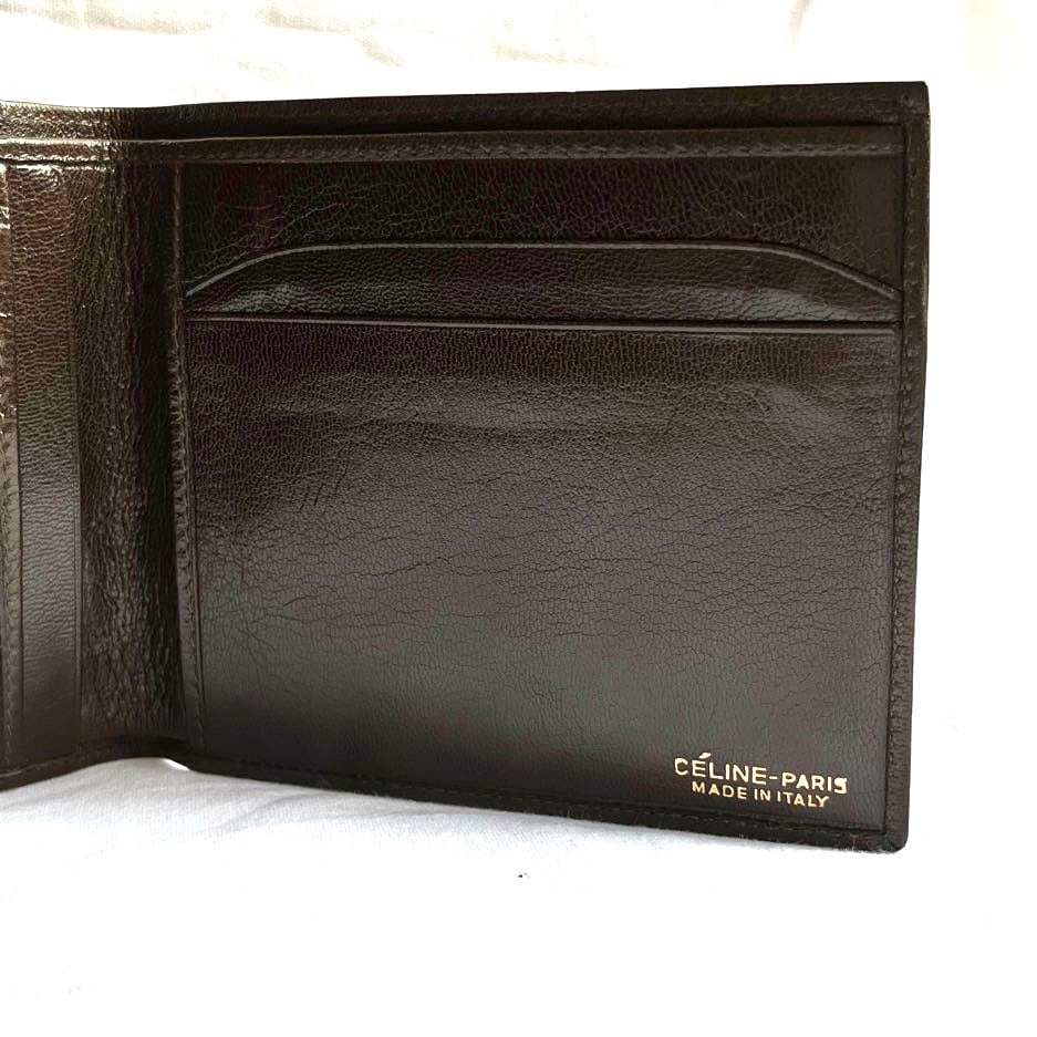 マットなDark Brownのレザー地に馬車のエンボスロゴが控えめなCELINE 1980's折りたたみ財布!Dead Stock☆☆