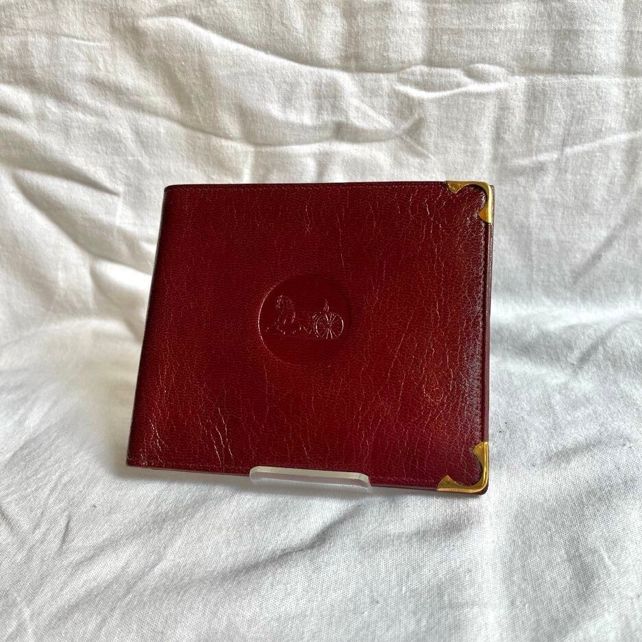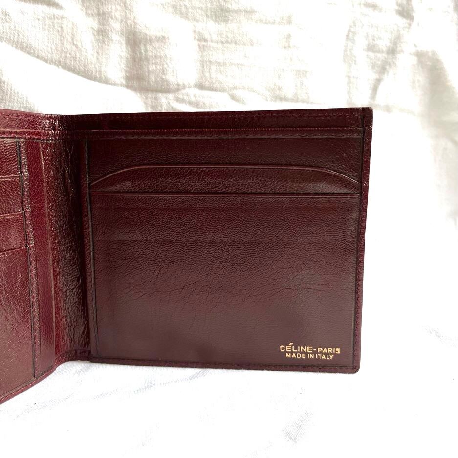 つやのあるボルドーレザー地に馬車のエンボスロゴがクラシックなCELINE 1980's折りたたみ財布!Dead Stock☆☆