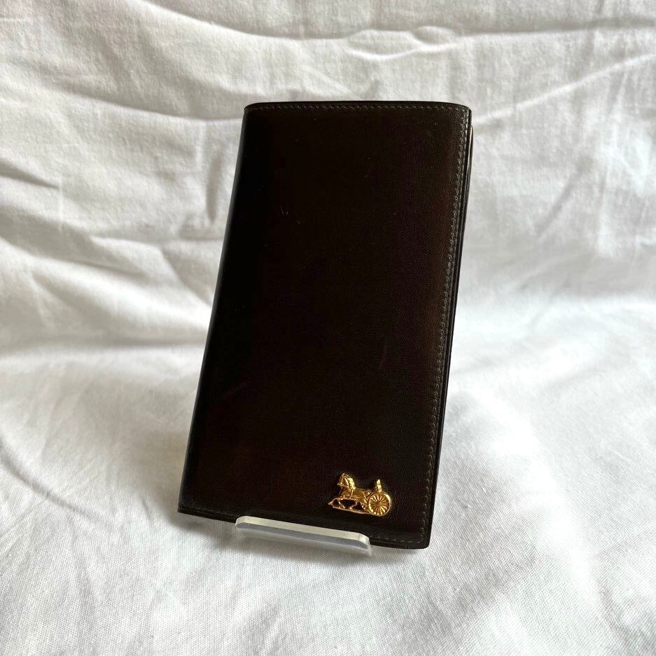 やわらかなDark Brownレザー地にゴールドの馬車ロゴが高級感のあるCELINE 1980'sアドレス帳!Dead Stock☆☆