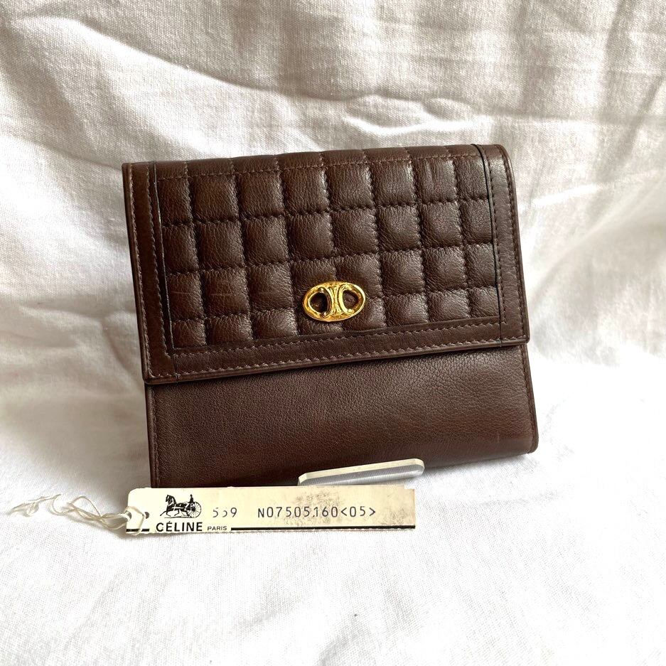 CELINE 1980's "Macadam × Brown Quilted Leather" Folded Wallet -Dead Stock!-