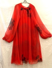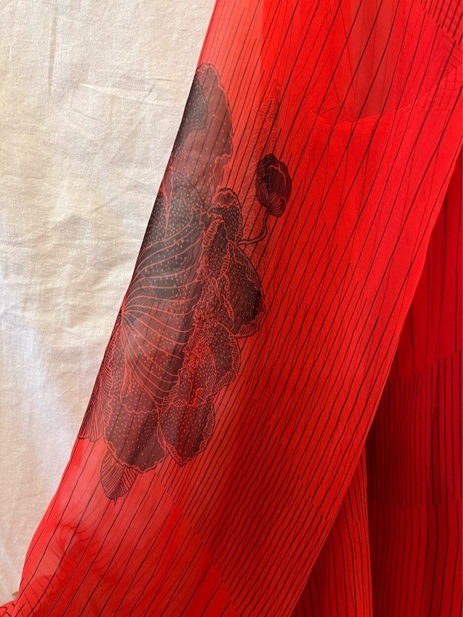 真っ赤なシアー地にブラックのストライプ、フラワープリントがゴシックな雰囲気のFrench 1980's Vintageワンピ!