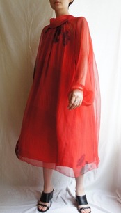 French 1980's "Red × Black Strip" Sheer Dress