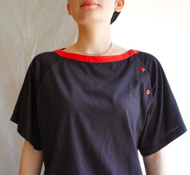 ブラックのボディにデコルテのレッドラインが映えるVALENTINO 80’s Vintage半袖トップス!