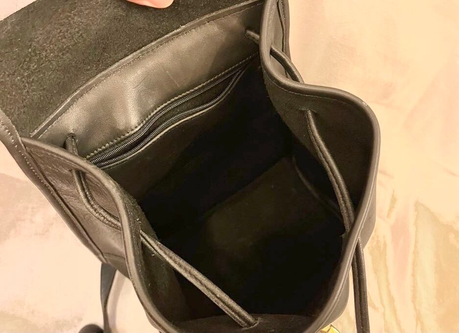 ブラックレザー地にゴールドの金具がCOACHらしいレザーのリュックサック!小ぶりながらも大き目でマチもしっかりあるのでバツグンの収納力☆