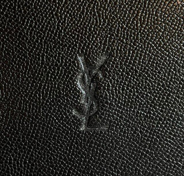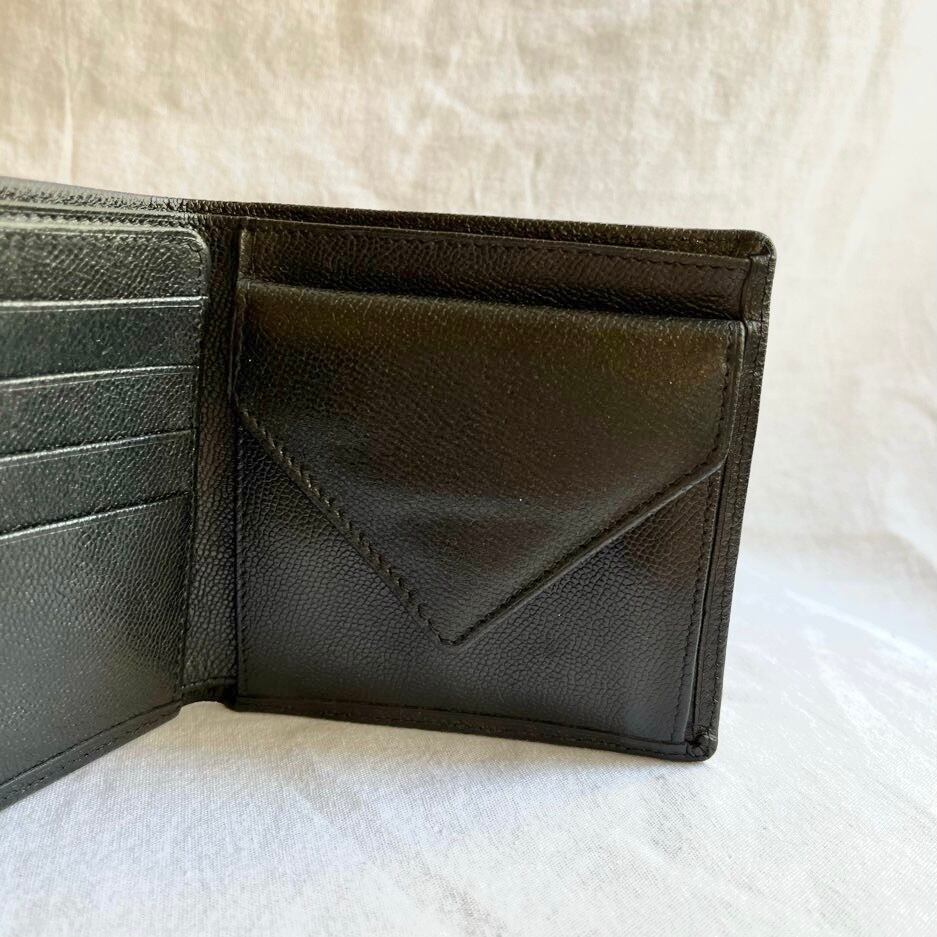 ブラックレザー地にゴールドのモチーフが映えるYSLの折り畳み財布