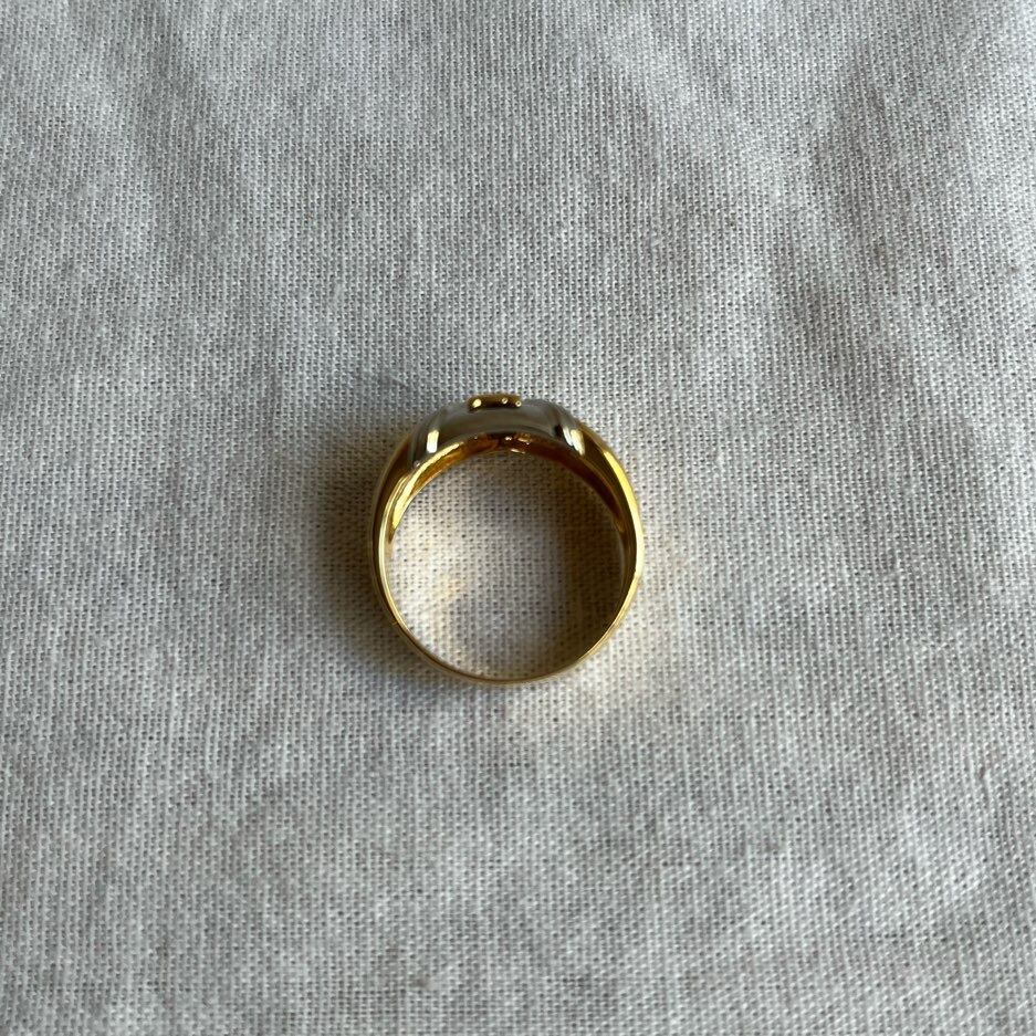 プラチナのVデザインにゴールドの小さなマカダムロゴが映えるCELINEのリング, レア!!