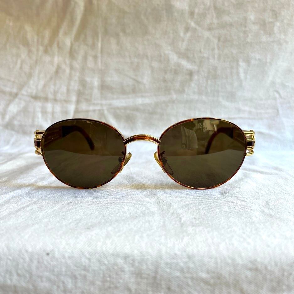 べっこう風のフレームにゴールドのメタルアームがクラシックな印象☆