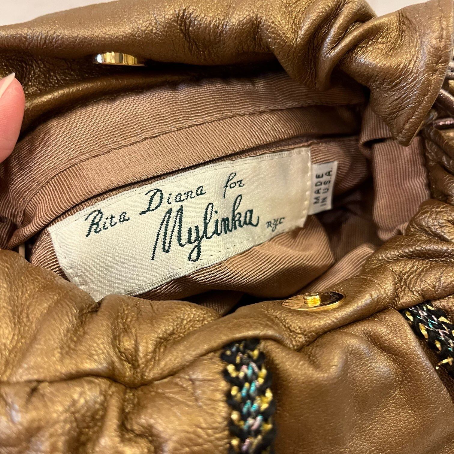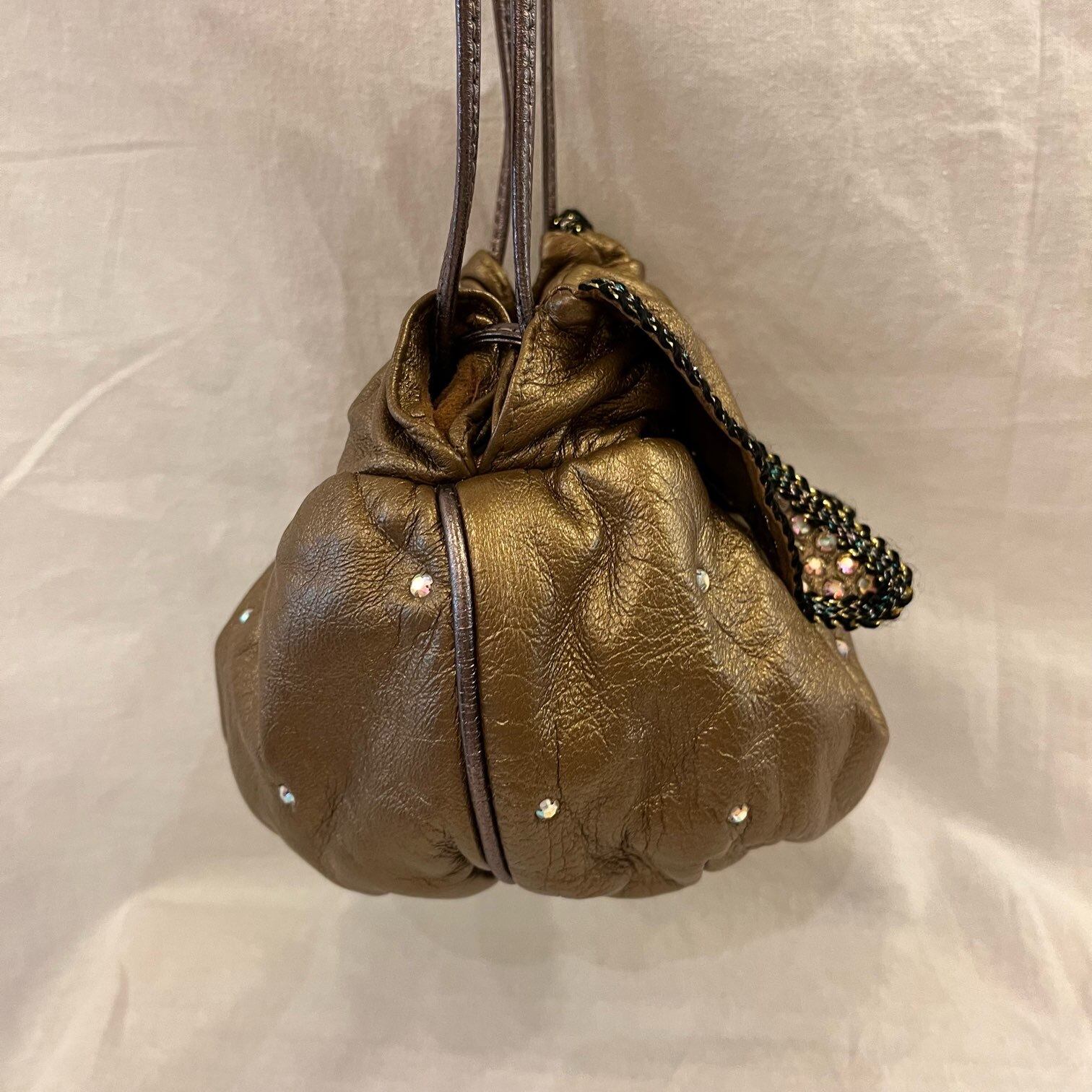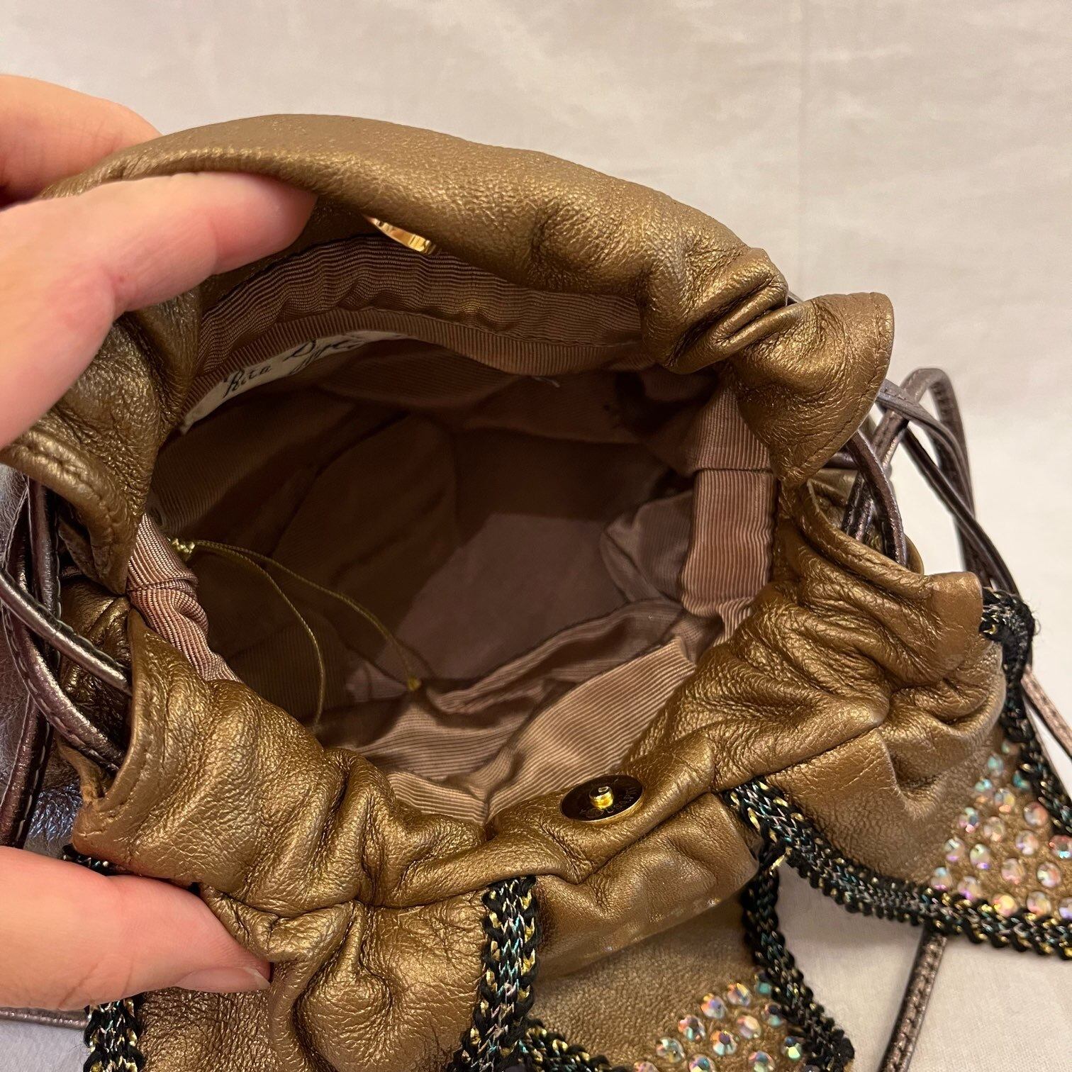 マットなゴールドレザーにクリスタルなビジューがキラキラと輝くU.S.Vintageミニショルダー!