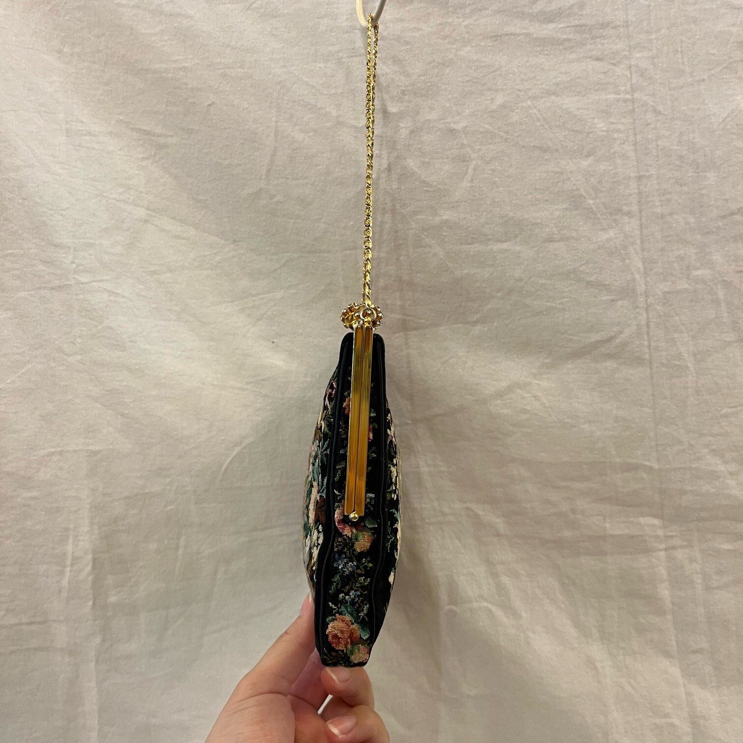 England 1960’s "Flower gobelin Embroidery & Metal Chain" Hand Bag