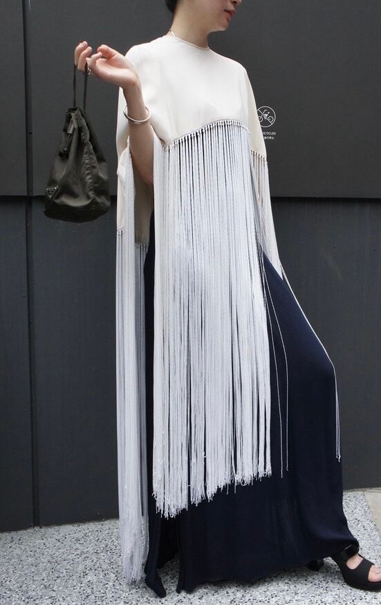 動くたびに揺れる、細い繊細なフリンジが魅力的な一枚です☆
