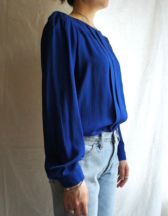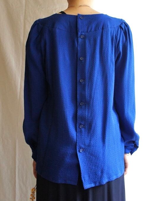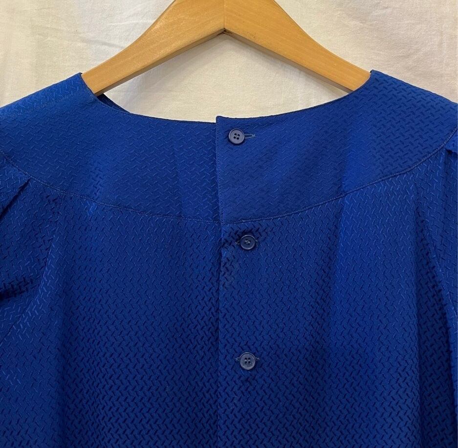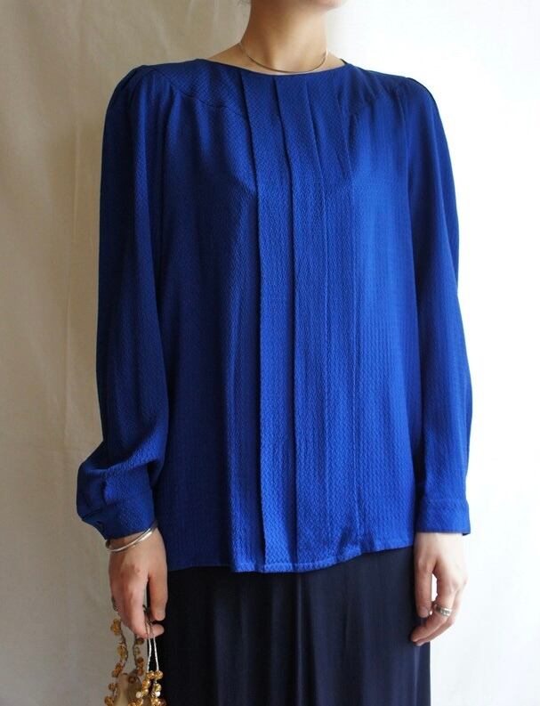 サックスブルーの色味が鮮やかなクレージュ1970~1980's Vintage Silkブラウス、レア。