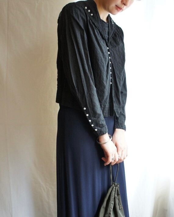 French Antique 1920~40's "Silor Collar" Blouse -Black-