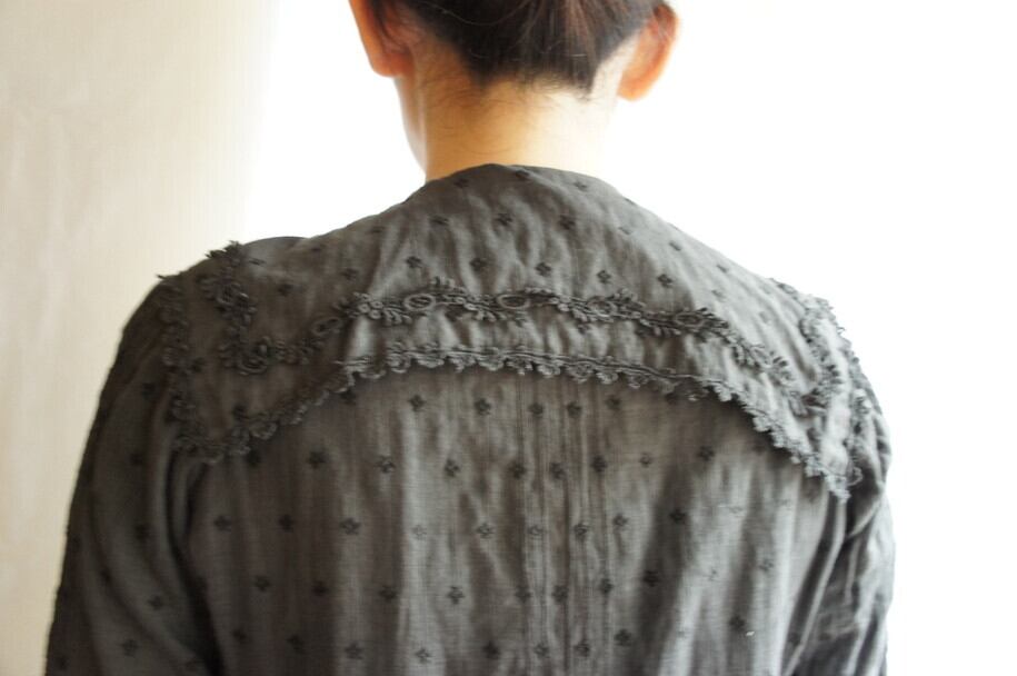細かな刺繍と所々にレイアウトされたレースがバツグンの雰囲気を醸し出す1920-40’s French Antiqueブラウス、handmade!