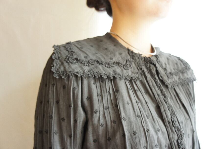 French Antique 1920~40's "Silor Collar" Blouse -Grey-
