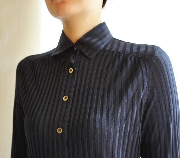 シアーなDark Navyストライプが知的な印象のCELINE 1970's~80's Vintageブラウス!